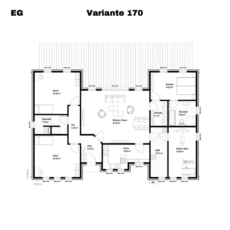 Der Bungalow "Sinfonie" verbindet großzügiges Wohnen mit einem lichtdurchfluteten Design, perfekt abgestimmt für Familien oder als 2-Generationen-Haus. Mit bis zu 170 qm Wohnfläche, durchdachten Grundrissen und einem windgeschützten Terrassenbereich bietet "Sinfonie" modernen Komfort und Raum für individuelle Gestaltung. Ob mit Keller oder integrierter Garage – der schlüsselfertige* Bungalow lässt sich flexibel an Ihre Wünsche anpassen und wird so zu Ihrem perfekten Traumhaus.